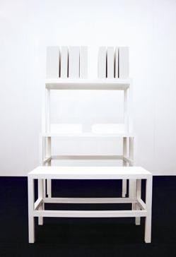 Tussen constructie en verbeelding: ruimte voor verlangen. Wat is de ruimte van het verlangen en waarheen drijft het verlangen ons? Dit werk brengt de toeschouwer naar een ver ‘ergens’, naar een wereld die zich als een bloem, als een boek openvouwt. Dat ‘ergens’ wordt in negen afzonderlijke ruimteboeken weergegeven. Maagdelijke witte werelden die nog niet door de mens aangetast zijn en een waaier van mogelijkheden uitvouwt.